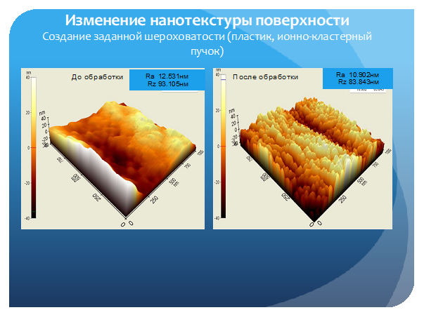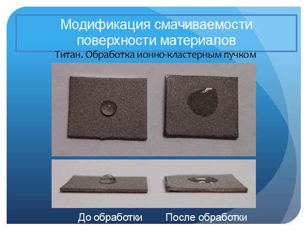 Сегодняшний опыт показывает, что во многих случаях модификация поверхности указанными технологиями приводит к появлению неожиданных и перспективных свойств поверхности.