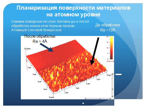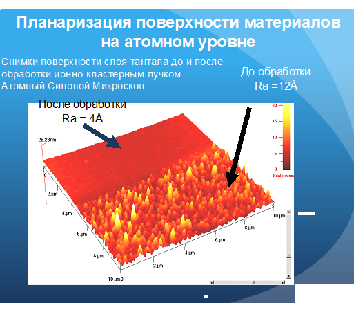 Ионно- и атомно-кластерные технологии являются мощным орудием получения критичных и качественно новых свойств изделия на различных стадиях технологической цепочки изготовления приборов и устройств, когда требуется: