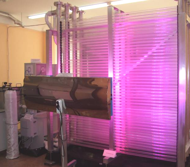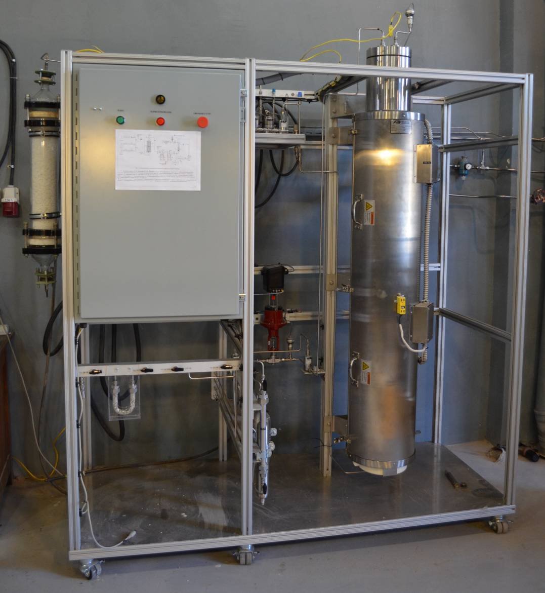 В соответствии с техническим заданием по договору с РИЦ «Курчатовский институт» был поставлен исследовательский комплекс получения компонентов «зеленых» моторных топлив из продуктов переработки биомассы микроводорослей, выращенных в трубчатом фотобиореакторе с искусственным освещением. Комплекс состоял из фотобиореактора, узлов сбора микроводорослей и экстракции липидов из них, а также установки для их переработки в моторные топлива.